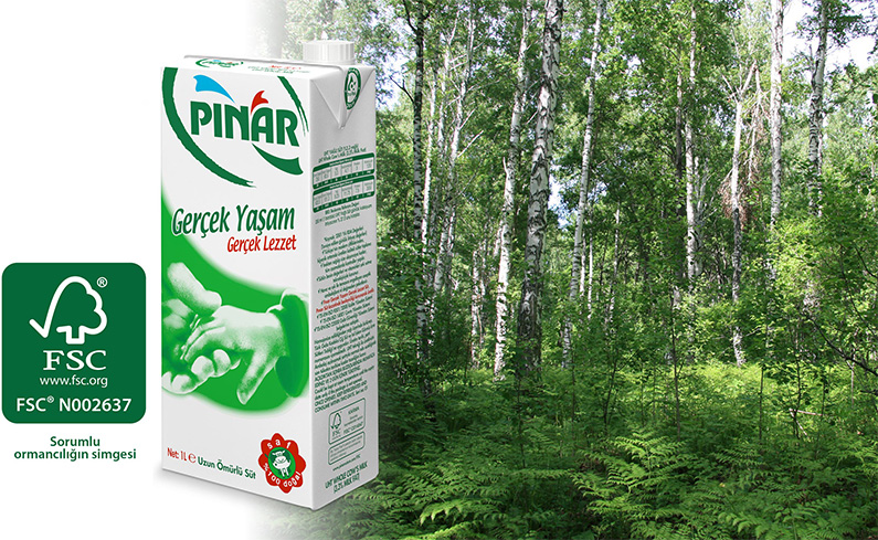 Gelecek nesillere olan sorumluluğunun bilinciyle üretimden rafa kadar her aşamada sürdürülebilirlik ilkesi ile verimlilik fırsatlarını değerlendiren Pınar, süt pazarında bir ilki gerçekleştirerek dünya ormanlarını korumayı kendine amaç edinen FSC® etiketli ambalajları kullanıyor